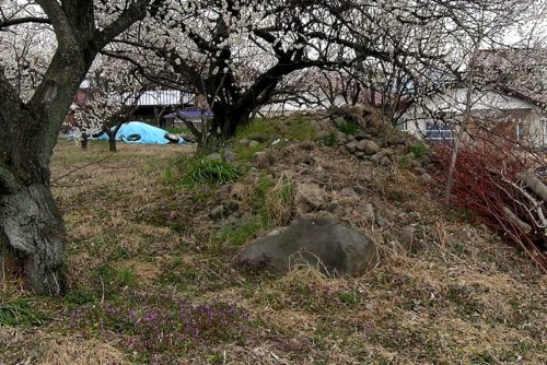 高崎市金井古墳群C号墳 90群馬県, た_高崎市, 旧ぐ_群馬町, 綜か_金古町 コメントを追加 1月 182025 金井C号墳は、牛池川と染谷川に挟まれた榛名山東麓斜面にあります。【アクセス】★地図★古墳名 墳形 規模 所在地 立地 出土品、備考 引用金井古墳群C号墳 円墳 不詳 金古字金井 須恵器片? 群馬県遺跡台帳 南から。石室材と思われる石材が露出している。この周辺には5基からなる金井古墳群が分布している(榛東村の金井古墳群とは別の群なので注意)が残るのはこのC号墳のみ。5基のいずれかから須恵器片が出土している。 (撮影 2005/03) 返信する 返信をやめる Your Comment 以下のHTML タグと属性が利用できます: <a href="" title=""> <abbr title=""> <acronym title=""> <b> <blockquote cite=""> <cite> <code> <del datetime=""> <em> <i> <q cite=""> <s> <strike> <strong> Name (required) E-mail (required) URI 次回のコメントで使用するためブラウザーに自分の名前、メールアドレス、サイトを保存する。