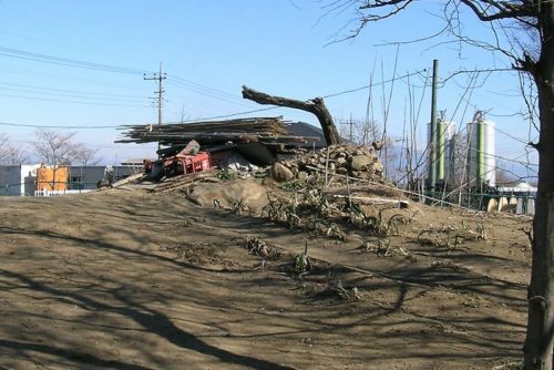 90号墳。墳丘は失われ石材が集められている。すぐ西に92号墳がある。北側にあった91号墳は削平。