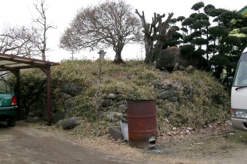 南東から。南側と東側は削られ石垣が積まれている。所有者に許可をもらい石室を見学。(*注 群馬県古墳総覧の記述は混乱がみられるのでここでは新編高崎市史の記述に従った。)