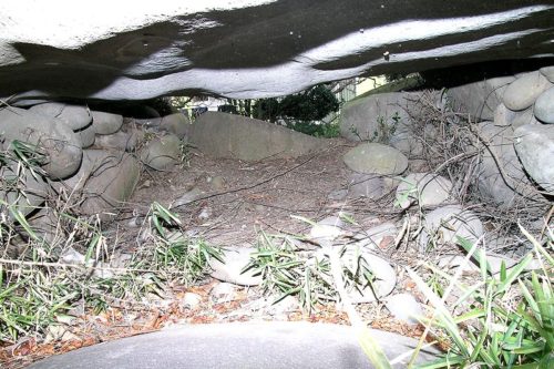 南南東に開口。天井石は厚さ0.8m、幅2.1m、奥行1.3m。(新編高崎市史より)
