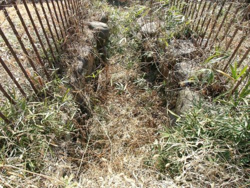 羨道から玄室。南向きに開口する自然石乱石積の両袖型横穴式石室。天井石は失っているが他は良好な状態で残されていた。