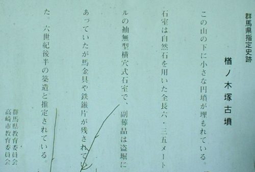 楢ノ木塚古墳(碓氷郡八幡村14号古墳) 円墳 径17.5m、高さ3.5m 若田町 台地 水晶製丸玉、鉄片、骨片、横穴式石室、葺石 新編高崎市史