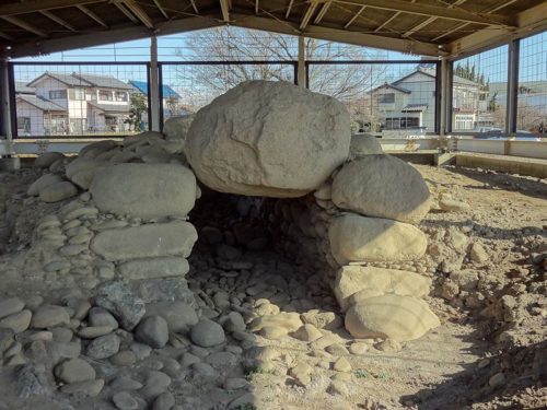 発掘時すでに天井石は失われていたがその他の状態がよかったので覆いを架けて保存。石室の全長7.3m、玄室長3.9m、玄室幅2.3m、羨道長3.4m、羨道幅0.9~1.2m。