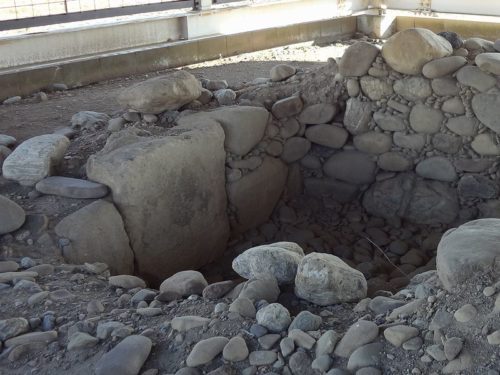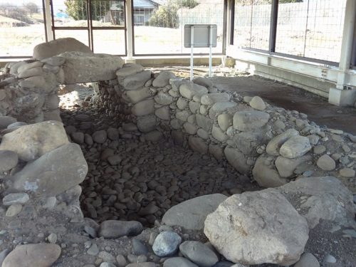 山名原口Ⅱ遺跡2号古墳 円墳 約16.5m 山名字原口 耳環、鈴、切子玉、勾玉、管玉、玉、鍔、柄頭、鉄鏃、小札、轡、横穴式石室 現地案内板