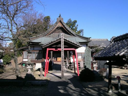 安楽寺本堂。裏にある墳丘は半壊状態で、寺院造営時に削平されたものと見られる。以前は多角形墳の可能性も考えられたが近年の調査で円墳であることが判明した。