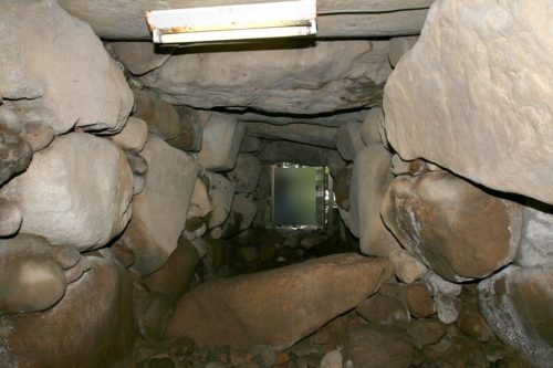 珍しく北向きに開口した石室。全長約10m。(普段は施錠されているが宮司様に許可をいただき見学)