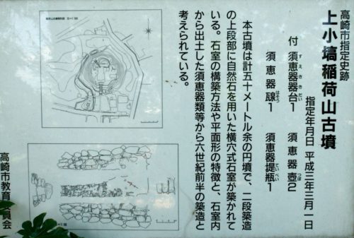 上小塙稲荷山古墳(六郷村12号古墳) 円墳 径50m 上小塙町 台地、神社 須恵器、横穴式石室 現地案内板、群馬県古墳総覧