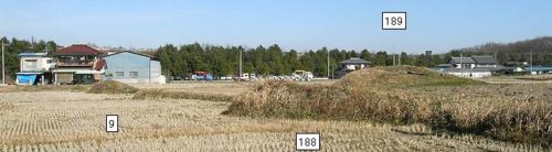 188号古墳。かろうじて墳丘の1/4が残っている程度。奥は189号古墳。