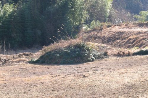吉井町誌の分布図で塩古墳群(その1)として掲載されている一群。関越ゴルフ倶楽部へ上っていく道との交差点近くにある。これは155号古墳。