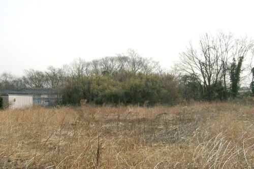 N77号古墳。民家敷地内に背の高い墳丘が残っている。