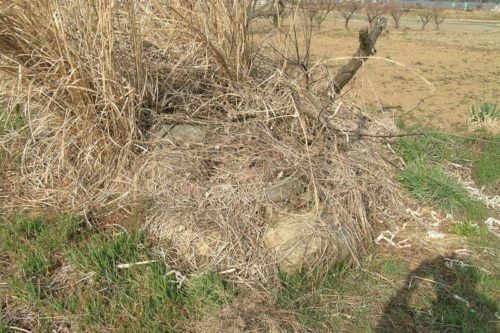 N78号古墳。裏山古墳の北側。墳丘はほとんど無く石材が見られる。