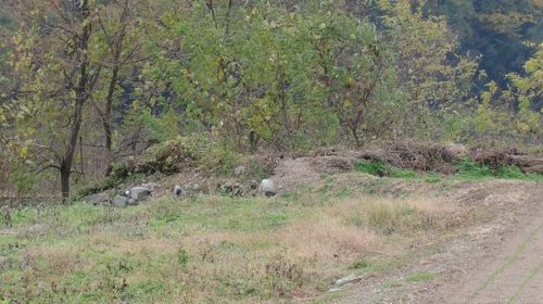 513号墳を東から。濃密な分布域からやや西へ離れた場所にある。石室材と思われる石が中央と左端に見える。