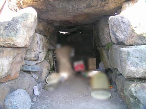 藤岡市宅地内古墳N(匿名) 90群馬県, ふ_藤岡市, 旧ふ_藤岡市, 綜ひ_日野村 コメントを追加 3月 292025 古墳名 墳形 規模 所在地 立地 出土品、備考 引用藤岡市宅地内古墳N(匿名) 円墳 現存径5.6m、高さ2m 藤岡市史 民家敷地内のため匿名で掲載。民家の裏に露出した石室が残っている。(所有者の方にお願いして見学) 昭和10年調査の上毛古墳綜覧によると当時は径18mの墳丘があったらしい。 玄室のみ残る。牛伏砂岩の巨石を用いた両袖型横穴式石室(袖は失われている)。現存全長3.62m、奥壁幅1.79m、同高さ1.72m。 (撮影 2004/02) 返信する 返信をやめる Your Comment 以下のHTML タグと属性が利用できます: <a href="" title=""> <abbr title=""> <acronym title=""> <b> <blockquote cite=""> <cite> <code> <del datetime=""> <em> <i> <q cite=""> <s> <strike> <strong> Name (required) E-mail (required) URI 次回のコメントで使用するためブラウザーに自分の名前、メールアドレス、サイトを保存する。