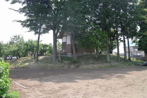 226号古墳を東から。墳丘上は天満宮。手前参道部分が前方部。