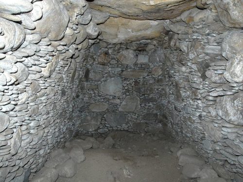 玄室。玄室長4.97m、同奥幅1.73m、同前幅1.31m、同奥高さ1.84m、同前高さ1.57m。片岩と珪岩を用いた模様積で。平面形は羽子板状。