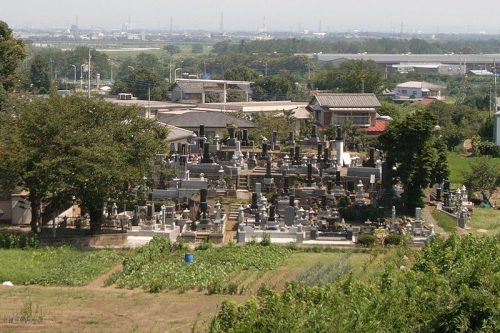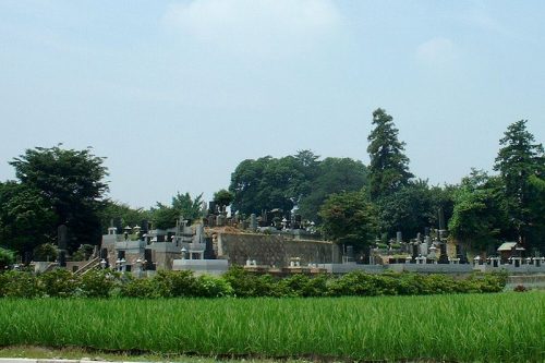 左手前が後円部。墓地化で変形が著しい。