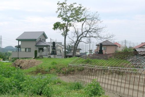 152号墳。周囲が削られ墳丘上は墓地となっている。この南東近くに天神塚がある。