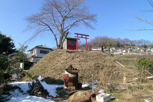 藤岡市鬼石町2号古墳(般若塚、大円樫) 90群馬県, ふ_藤岡市, 旧お綜_鬼石町, 旧ふ_藤岡市 コメントを追加 4月 132025 本古墳は、神流川と三波川の合流点北側の丘陵上に築かれています。【アクセス】 ★地図★ 古墳名 墳形 規模 所在地 立地 出土品、備考 引用鬼石町2号古墳(般若塚、大円樫) 円墳 径7m、高さ4m 鬼石 鬼石町誌 南東から。諏訪・稲荷社となっている。古墳名を記した標柱があったが折れていた。観光案内マップでは「大円樫古墳」と表記されている。 北から。神流川を見下ろす眺望のよい場所に築かれている。 (撮影 2005/01) 返信する 返信をやめる Your Comment 以下のHTML タグと属性が利用できます: <a href="" title=""> <abbr title=""> <acronym title=""> <b> <blockquote cite=""> <cite> <code> <del datetime=""> <em> <i> <q cite=""> <s> <strike> <strong> Name (required) E-mail (required) URI 次回のコメントで使用するためブラウザーに自分の名前、メールアドレス、サイトを保存する。