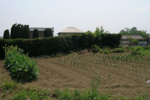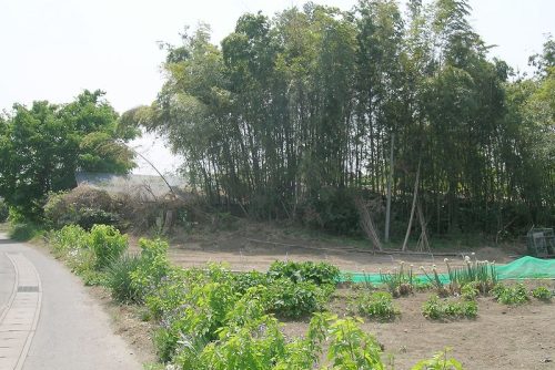 144号墳を北から。生垣に囲まれた墓地の土台。