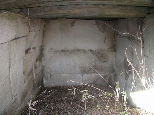 凝灰岩の截石を用いた精巧な造り。平面形は矩形。残存長2.15m、奥幅1.95m、高さ2.1m。奥壁には「明治二十三年二月六日…(途中不明)…古物ナシ」と彫りこみがしてある。