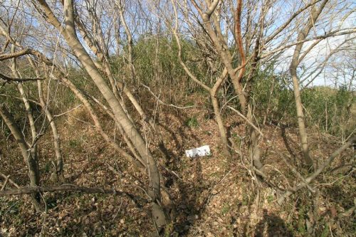 474号墳。模様積の石室開口とのことだが墳頂部が石室状に陥没しているだけだった。落ち葉で見えなかったのかもしれない。