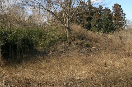480号墳。前方後円墳。上毛古墳綜覧の平井村288号に相当。これも石室開口とのことだが発見出来なかった。(篠藪で観察困難)盗掘らしい穴なら2箇所あった。