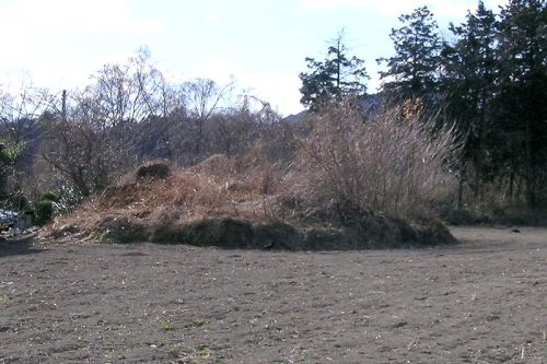東平井古墳群は、鮎川と神流川に挟まれた藤岡台地の西南端部に分布し4支群からなる群集墳(昭和10年調査で368基、56年で約150基)です。その内の塚間支群は、飛石支群の南側で県道神田吉井停車場線の南500m・東西400mほどの範囲に分布しています。綜覧(昭和10年調査)には116基、昭和59年調査では43基が確認されています。塚間地区に濃密に分布し、円形の横穴式古墳のみで積石塚的様相のものが多い。6世紀後半から7世紀末にかけて築造(飛石支群についで出現)されたものと推定されています。(資料:藤岡市史)文中の綜覧の番号は藤岡市遺跡詳細分布調査(Ⅲ)より引用。