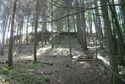 東から。丘陵南側から登山道が整備されているので、体力さえあれば探訪は容易。丘陵頂部を整形して築かれた円墳で、当地方では最も古い時期である4世紀後半頃の首長墓と推定されている。