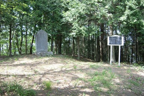 墳頂部。明治27年に偶然遺物が発見され、その経緯を記した碑が建立されている。よく見ると有名な坪井博士の名前がある。