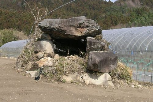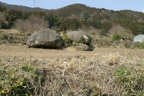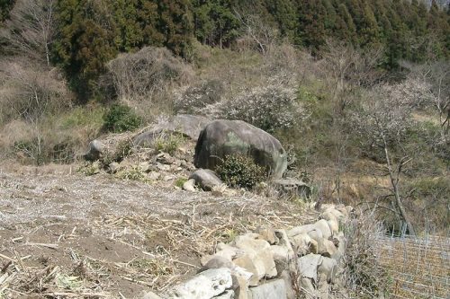 8号墳からさらに上に登ると巨石が畑の中にある。