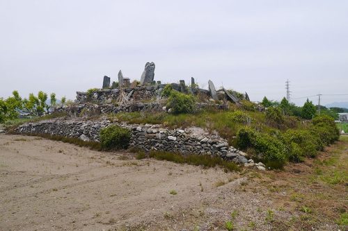 上田篠支群は田篠工業団地の南の開けた畑の中に分布している。開けた畑の中にあるので良く目立つ。3段の石垣と石塔でまるで要塞のよう。この支群の他の墳丘は皆削り取られて低いものばかり。(これは逆に後世に盛り土してるかも)