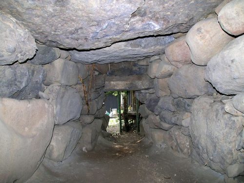 玄室。玄室長4.2m、奥壁幅2.1m、同高さ1.8m、中央幅2.4m、玄門部幅1.8m。やや胴張りのプラン。奥壁は安山岩の巨石。側壁は通し目積。