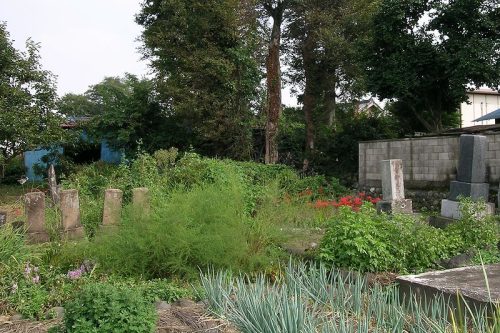 No.351を西から。軍配山の200mほど北東にある。手前の墓地ではなく奥の木立の下が墳丘。
