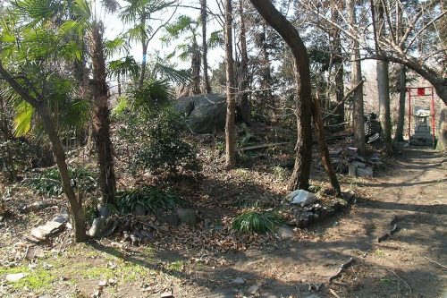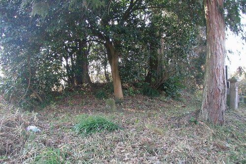 碓氷側右岸の台地を見下ろす丘陵の端に3基の古墳が並んでいる。これは5号墳址か?この奥の民家裏にもそれらしい塚(石垣で整形されている)がある。