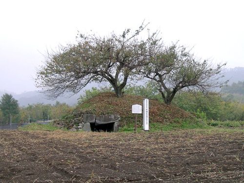 (現地案内板より抜粋) 万福原古墳(秋間12号墳) 安中市指定史跡 平成12年9月27日指定万福原古墳は、7世紀後半に構築された円墳で、その墳丘規模は残存径12m(復元直径20m)、高さ3mである。 主体部は両袖型横穴式石室で、玄室は溶結凝灰岩(秋間石)の截石を用い、玄室の側壁は石の合わせ目が上下で互い違いになる互目積で構築している。また、羨道は同じく溶結凝灰岩の截石を用い、石の各角を直角に截り組ませる切石積で構築している。羨道から玄室の入口には安山岩の截石を用いた?石(冠石)、袖石、框石を複雑・巧妙に組み合わせた玄門構造で構築している。石室の全長は7.08m、羨道長4.25m、同幅1.32m、玄室長2.81m、同高さ2.9m、同奥幅2.1m、同中央幅2.25m、同手前幅2.15mである。安中市では截石切組石室を主体部とする古墳は秋間川流域の丘陵部に分布しているが、截石切組石室を造る技術者集団の存在や秋間窯址群との関連を伺わせる貴重な歴史的遺産である。 中でも万福原古墳は石室の保存状態が良好である。 安中市教育委員会