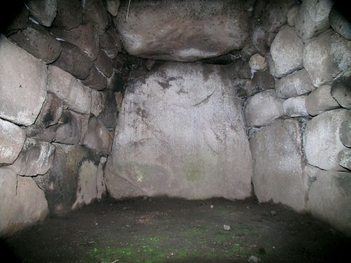 天井石、奥壁は巨石使用。側壁は溶結凝灰岩の截石を用いた互目積。