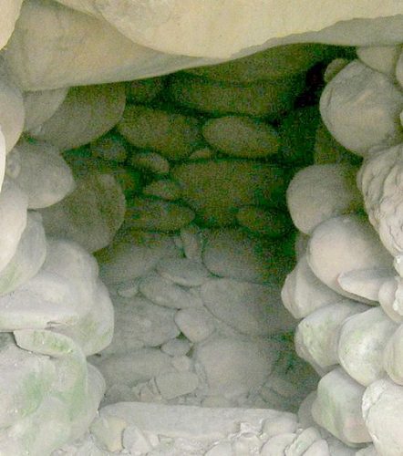 望遠で玄門と奥壁。ここも自然石乱積。いかに玄室の奥行きが狭いかおわかりいただけるだろうか。