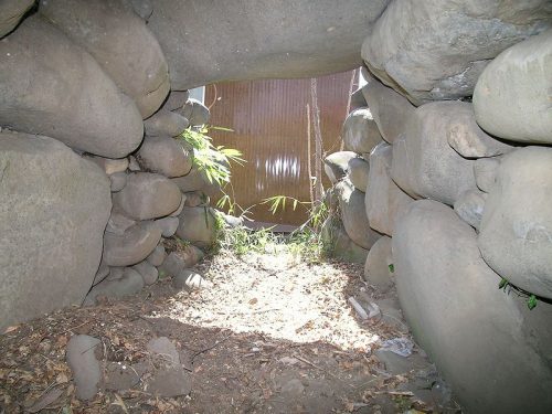 安中市宅地内古墳T(匿名) 90群馬県, あ_安中市, 旧ま_松井田町, 綜つ_九十九村 コメントを追加 2月 232025 民家敷地内のため匿名で掲載。(所有者に許可をいただいて見学してきました)墳丘は削られて玄室を覆う程度であるが、それでも町内では良好の部類。南向きに石室が開口。羨道部の天井石は消失。羨道長1.7m、巾1.1m。 玄室。玄室長3.2m、巾1.5~1.8m、高さ1.4m~1.6m(奥ほど広い)。一面を割り取った大石が使用されている。以前は漬物置き場だったそうである。 奥から外。無袖形。 (撮影 2004/03) 返信する 返信をやめる Your Comment 以下のHTML タグと属性が利用できます: <a href="" title=""> <abbr title=""> <acronym title=""> <b> <blockquote cite=""> <cite> <code> <del datetime=""> <em> <i> <q cite=""> <s> <strike> <strong> Name (required) E-mail (required) URI 次回のコメントで使用するためブラウザーに自分の名前、メールアドレス、サイトを保存する。