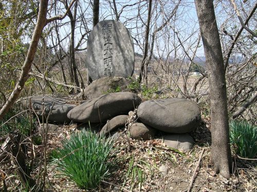 墳頂に絹笠大明神(明治26年)。この下が石室。南側は開口していない。