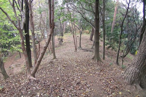 北東から。左手前が後円部、右奥が前方部。丘陵の頂部を利用して2段に築成され、円筒埴輪や形象埴輪が出土している。6世紀後半(案内板では中頃)の築造と推定されている。
