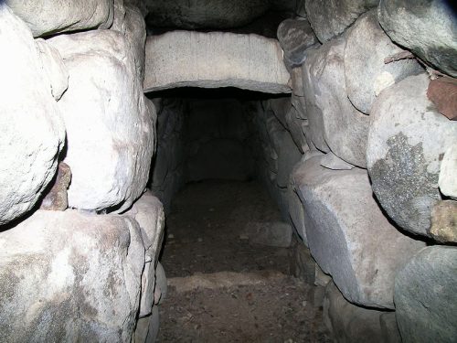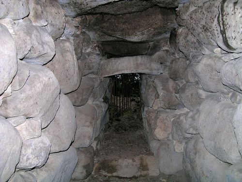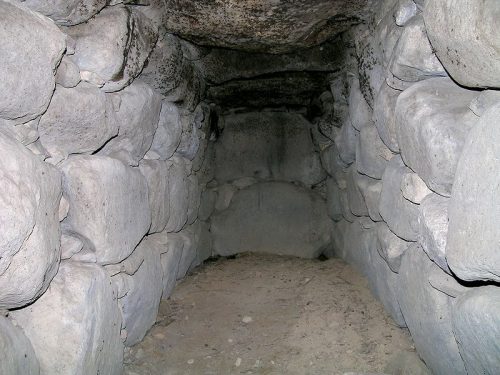 羨道部。羨道長4.3m、同奥幅1.3m、同高さ2.8m。高い位置にマグサ石がある。
