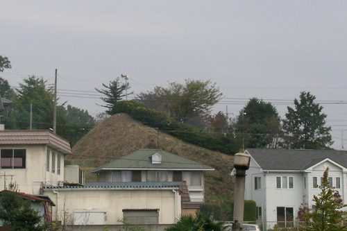 15号墳のある丘陵を南から。地形図を見るとこの丘陵はもっと左側に高い山であったがごっそり削られてしまったようだ。その頂部には径25mの14号墳があったが消滅。