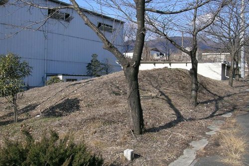夫婦石東古墳。有馬企業団地内の工場駐車場の一角にある。石室が残存しているらしいが埋め戻されたのか確認出来なかった。