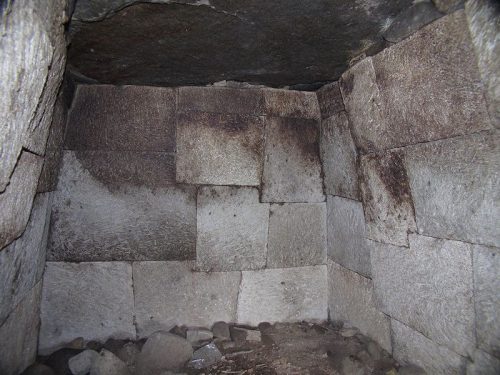 玄室。角閃安山岩の截石切組積。