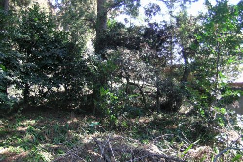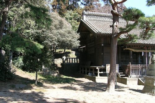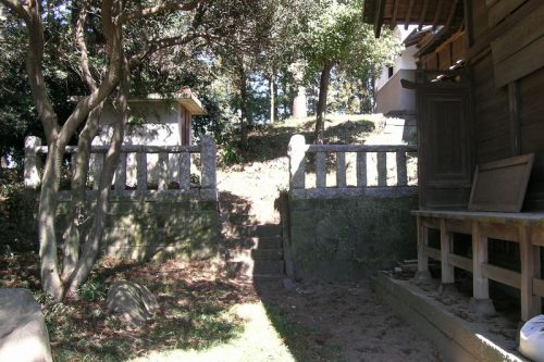 南西から。木曾三柱神社社。村誌によれは村内で最大の石室があるらしいが確認出来なかった。このすぐ東には朝日塚古墳があったが多目的集会施設建設で消滅(自然石使用の両袖型横穴式石室を持ち7世紀末の築造と推定されている)。その他七騎塚古墳(消滅)とともに宮廻古墳群を形成していた。
