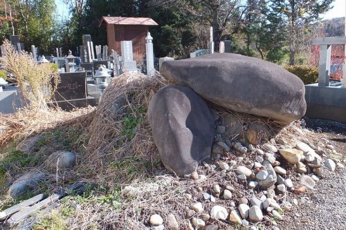 東吾妻町原町8号古墳 90群馬県, ひ_東吾妻町, 旧あ_吾妻町, 綜は_原町 コメントを追加 5月 112025 原町下之町古墳群は、カインズホーム西方の吾妻川左岸段丘上に分布しています。上毛古墳綜覧記載の原町1号~16号に相当します。【アクセス】★地図★古墳名 墳形 規模 所在地 立地 出土品、備考 引用原町8号古墳 円墳 径10.9m、高さ2.1m 原町字下之町 河岸段丘 槨石露ル 上毛古墳綜覧 墓地の一角に残る1基で横穴式石室が露出している。上毛古墳綜覧記載の原町8号と思われる。 綜覧の記述からすると当時は墳丘が残っていたようだ。 (撮影 2012/11) 返信する 返信をやめる Your Comment 以下のHTML タグと属性が利用できます: <a href="" title=""> <abbr title=""> <acronym title=""> <b> <blockquote cite=""> <cite> <code> <del datetime=""> <em> <i> <q cite=""> <s> <strike> <strong> Name (required) E-mail (required) URI 次回のコメントで使用するためブラウザーに自分の名前、メールアドレス、サイトを保存する。