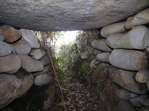 玄室は良く残っている。側壁奥壁ともに転石・川原石の乱石積み。高さは1.5mほど。