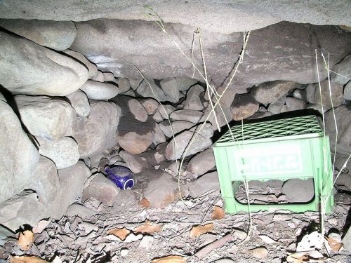南向きに開口する横穴式石室。羨道部分は破壊か。