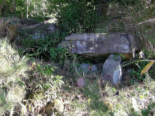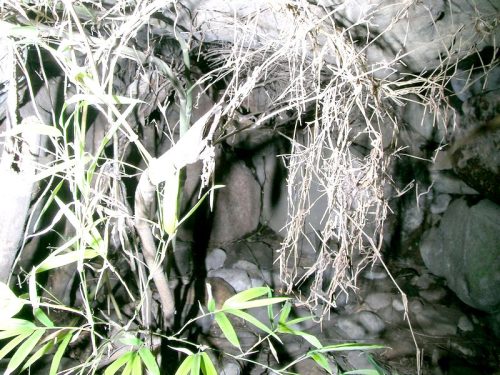 天井石のすき間から撮影。中にも篠竹があってうまく写らなかった。