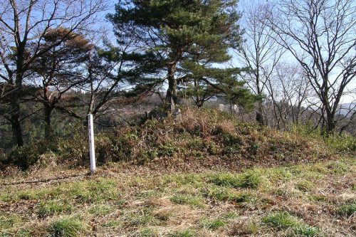 西から。山田勝負瀬古墳群の1基。町指定史跡。
